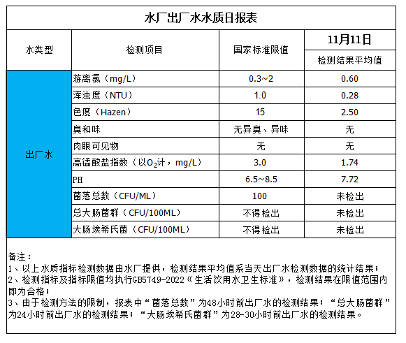 水廠出廠水水質(zhì)日報(bào)表(2025-11-11)