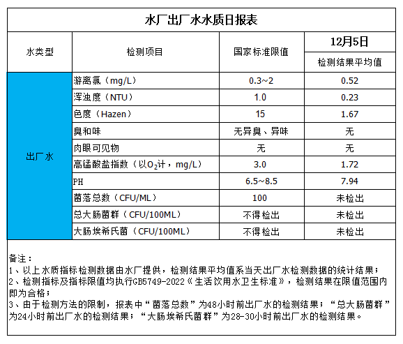 水廠出廠水水質(zhì)日報表(2025-12-5)